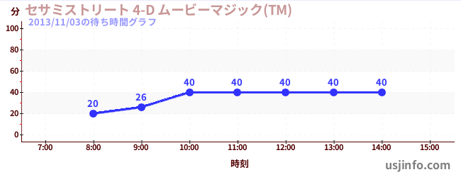 • セサミストリート 4-D ムービーマジック(TM)$B$N(B2013年11月03日の待ち時間