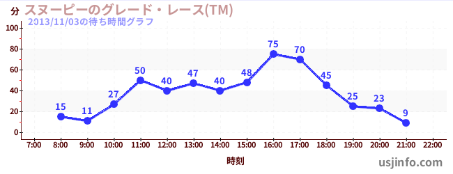 • スヌーピーのグレード・レース(TM)$B$N(B2013年11月03日の待ち時間