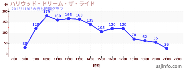 • ハリウッド・ドリーム・ザ・ライド$B$N(B2013年11月03日の待ち時間