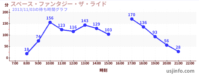 • スペース・ファンタジー・ザ・ライド$B$N(B2013年11月03日の待ち時間