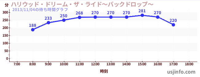 • ハリウッド・ドリーム・ザ・ライド〜バックドロップ〜$B$N(B2013年11月04日の待ち時間