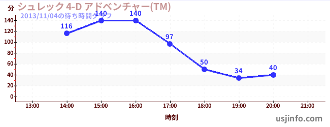 • シュレック 4-D アドベンチャー(TM)$B$N(B2013年11月04日の待ち時間