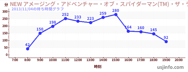 • NEW アメージング・アドベンチャー・オブ・スパイダーマン(TM)・ザ・ライド 4K3D$B$N(B2013年11月04日の待ち時間