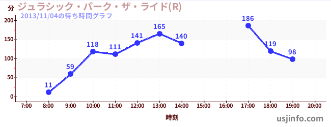 • ジュラシック・パーク・ザ・ライド(R)$B$N(B2013年11月04日の待ち時間