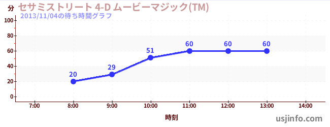 • セサミストリート 4-D ムービーマジック(TM)$B$N(B2013年11月04日の待ち時間