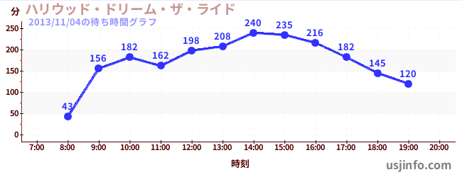 • ハリウッド・ドリーム・ザ・ライド$B$N(B2013年11月04日の待ち時間