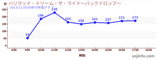 • ハリウッド・ドリーム・ザ・ライド〜バックドロップ〜$B$N(B2013年11月05日の待ち時間