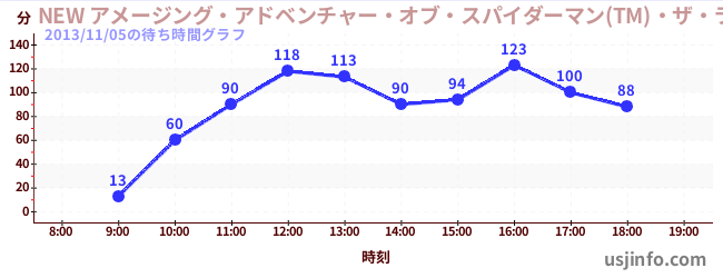 • NEW アメージング・アドベンチャー・オブ・スパイダーマン(TM)・ザ・ライド 4K3D$B$N(B2013年11月05日の待ち時間