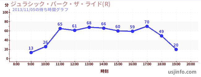 • ジュラシック・パーク・ザ・ライド(R)$B$N(B2013年11月05日の待ち時間