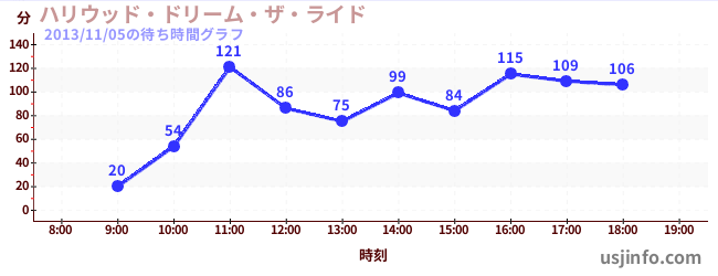 • ハリウッド・ドリーム・ザ・ライド$B$N(B2013年11月05日の待ち時間