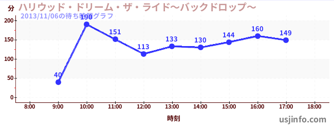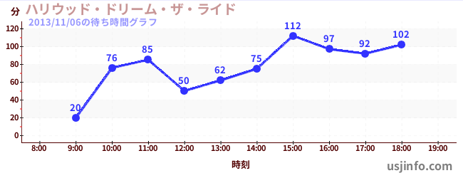 • ハリウッド・ドリーム・ザ・ライド〜バックドロップ〜$B$N(B2013年11月06日の待ち時間
