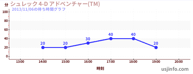 • シュレック 4-D アドベンチャー(TM)$B$N(B2013年11月06日の待ち時間