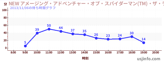 • NEW アメージング・アドベンチャー・オブ・スパイダーマン(TM)・ザ・ライド 4K3D$B$N(B2013年11月06日の待ち時間