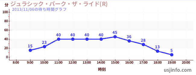 • ジュラシック・パーク・ザ・ライド(R)$B$N(B2013年11月06日の待ち時間