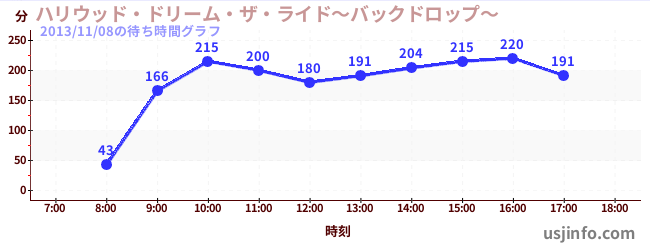 • ハリウッド・ドリーム・ザ・ライド〜バックドロップ〜$B$N(B2013年11月08日の待ち時間