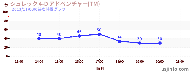 • シュレック 4-D アドベンチャー(TM)$B$N(B2013年11月08日の待ち時間