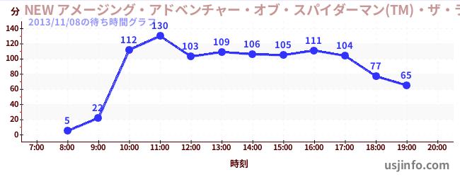• NEW アメージング・アドベンチャー・オブ・スパイダーマン(TM)・ザ・ライド 4K3D$B$N(B2013年11月08日の待ち時間