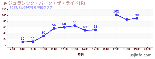 • ジュラシック・パーク・ザ・ライド(R)$B$N(B2013年11月08日の待ち時間