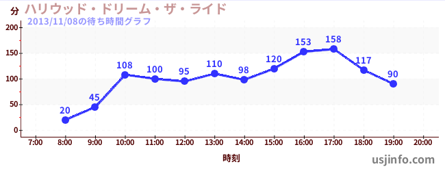 • ハリウッド・ドリーム・ザ・ライド$B$N(B2013年11月08日の待ち時間