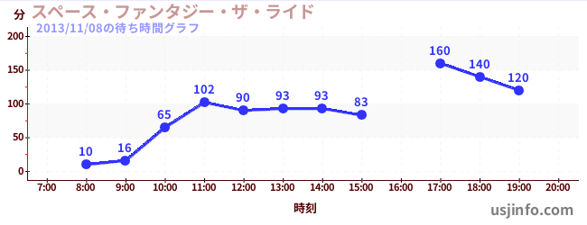 • スペース・ファンタジー・ザ・ライド$B$N(B2013年11月08日の待ち時間