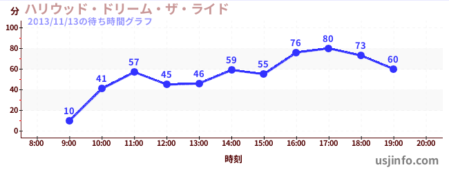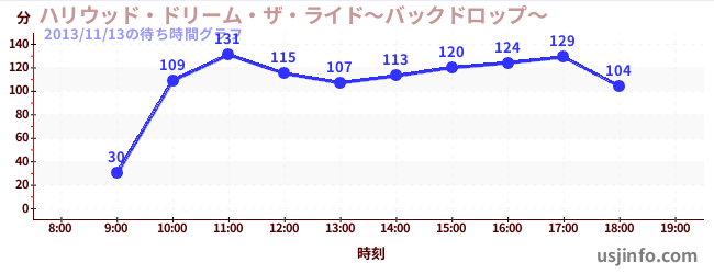 • ハリウッド・ドリーム・ザ・ライド〜バックドロップ〜$B$N(B2013年11月13日の待ち時間