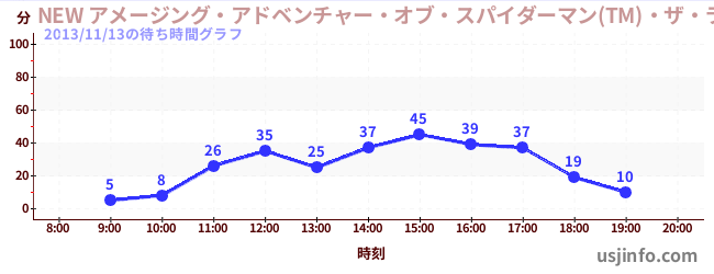 • NEW アメージング・アドベンチャー・オブ・スパイダーマン(TM)・ザ・ライド 4K3D$B$N(B2013年11月13日の待ち時間