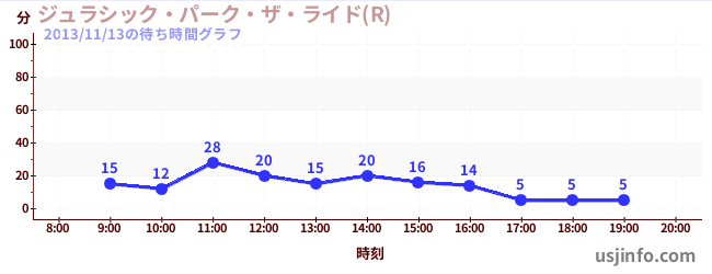 • ジュラシック・パーク・ザ・ライド(R)$B$N(B2013年11月13日の待ち時間