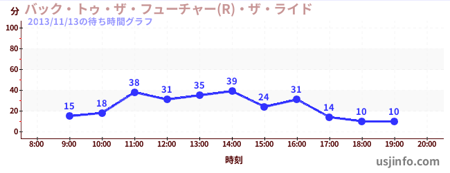 • バック・トゥ・ザ・フューチャー(R)・ザ・ライド$B$N(B2013年11月13日の待ち時間