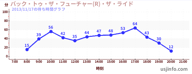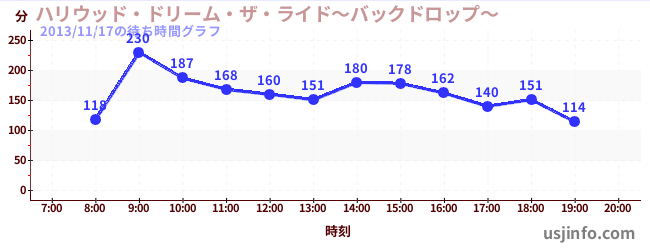 • ハリウッド・ドリーム・ザ・ライド〜バックドロップ〜$B$N(B2013年11月17日の待ち時間