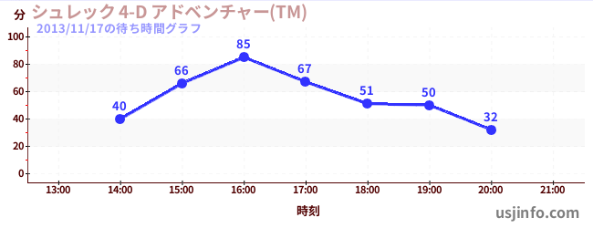 • シュレック 4-D アドベンチャー(TM)$B$N(B2013年11月17日の待ち時間