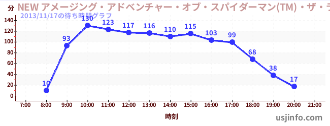 • NEW アメージング・アドベンチャー・オブ・スパイダーマン(TM)・ザ・ライド 4K3D$B$N(B2013年11月17日の待ち時間