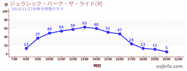 • ジュラシック・パーク・ザ・ライド(R)$B$N(B2013年11月17日の待ち時間