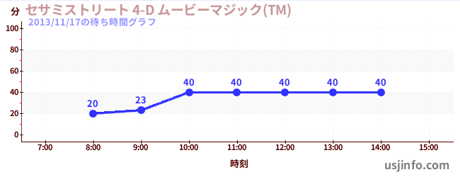 • セサミストリート 4-D ムービーマジック(TM)$B$N(B2013年11月17日の待ち時間