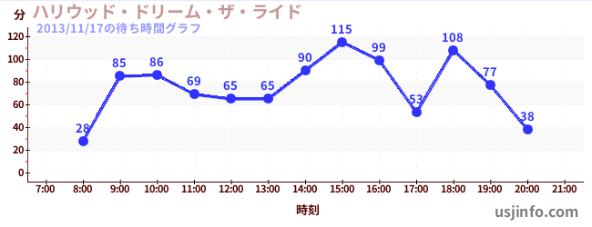 • ハリウッド・ドリーム・ザ・ライド$B$N(B2013年11月17日の待ち時間