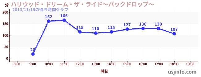 • ハリウッド・ドリーム・ザ・ライド〜バックドロップ〜$B$N(B2013年11月19日の待ち時間