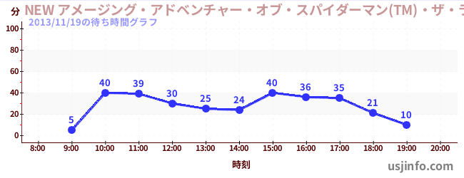 • NEW アメージング・アドベンチャー・オブ・スパイダーマン(TM)・ザ・ライド 4K3D$B$N(B2013年11月19日の待ち時間