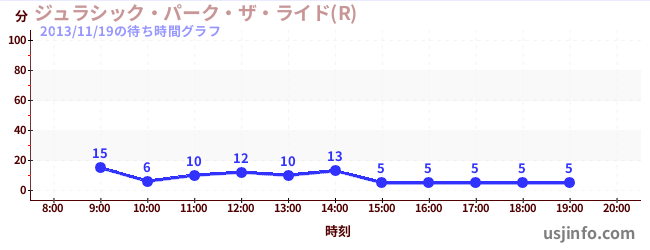 • ジュラシック・パーク・ザ・ライド(R)$B$N(B2013年11月19日の待ち時間