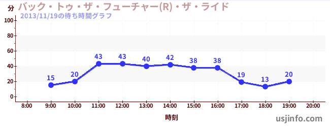 • バック・トゥ・ザ・フューチャー(R)・ザ・ライド$B$N(B2013年11月19日の待ち時間