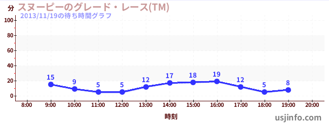 • スヌーピーのグレード・レース(TM)$B$N(B2013年11月19日の待ち時間