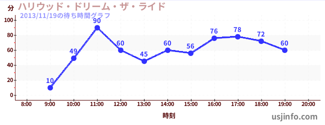 • ハリウッド・ドリーム・ザ・ライド$B$N(B2013年11月19日の待ち時間