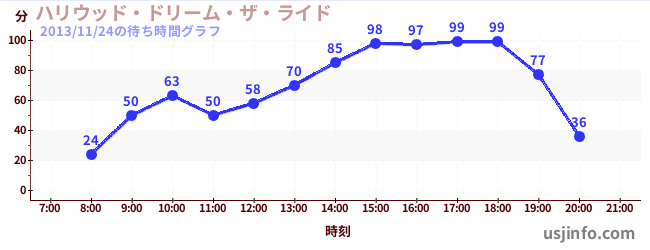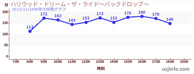 • ハリウッド・ドリーム・ザ・ライド〜バックドロップ〜$B$N(B2013年11月24日の待ち時間