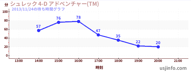 • シュレック 4-D アドベンチャー(TM)$B$N(B2013年11月24日の待ち時間