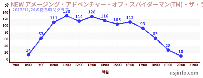 • NEW アメージング・アドベンチャー・オブ・スパイダーマン(TM)・ザ・ライド 4K3D$B$N(B2013年11月24日の待ち時間