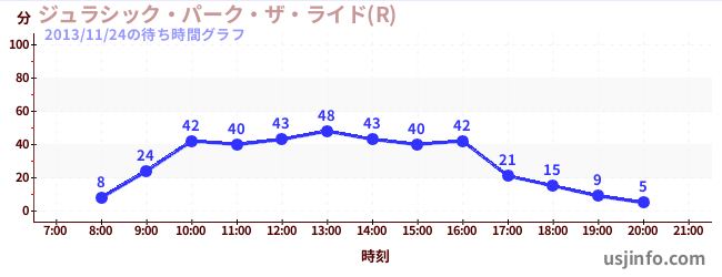 • ジュラシック・パーク・ザ・ライド(R)$B$N(B2013年11月24日の待ち時間
