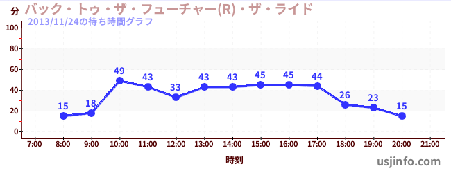 • バック・トゥ・ザ・フューチャー(R)・ザ・ライド$B$N(B2013年11月24日の待ち時間