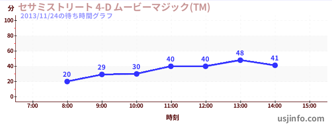 • セサミストリート 4-D ムービーマジック(TM)$B$N(B2013年11月24日の待ち時間