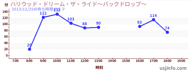 • ハリウッド・ドリーム・ザ・ライド〜バックドロップ〜$B$N(B2013年11月25日の待ち時間
