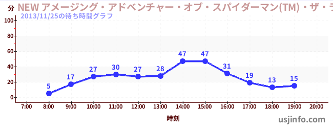 • NEW アメージング・アドベンチャー・オブ・スパイダーマン(TM)・ザ・ライド 4K3D$B$N(B2013年11月25日の待ち時間