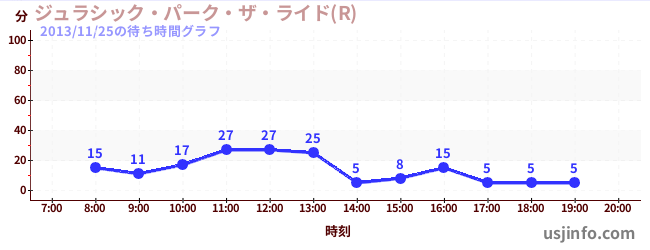 • ジュラシック・パーク・ザ・ライド(R)$B$N(B2013年11月25日の待ち時間