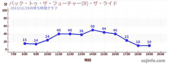 • バック・トゥ・ザ・フューチャー(R)・ザ・ライド$B$N(B2013年11月25日の待ち時間
